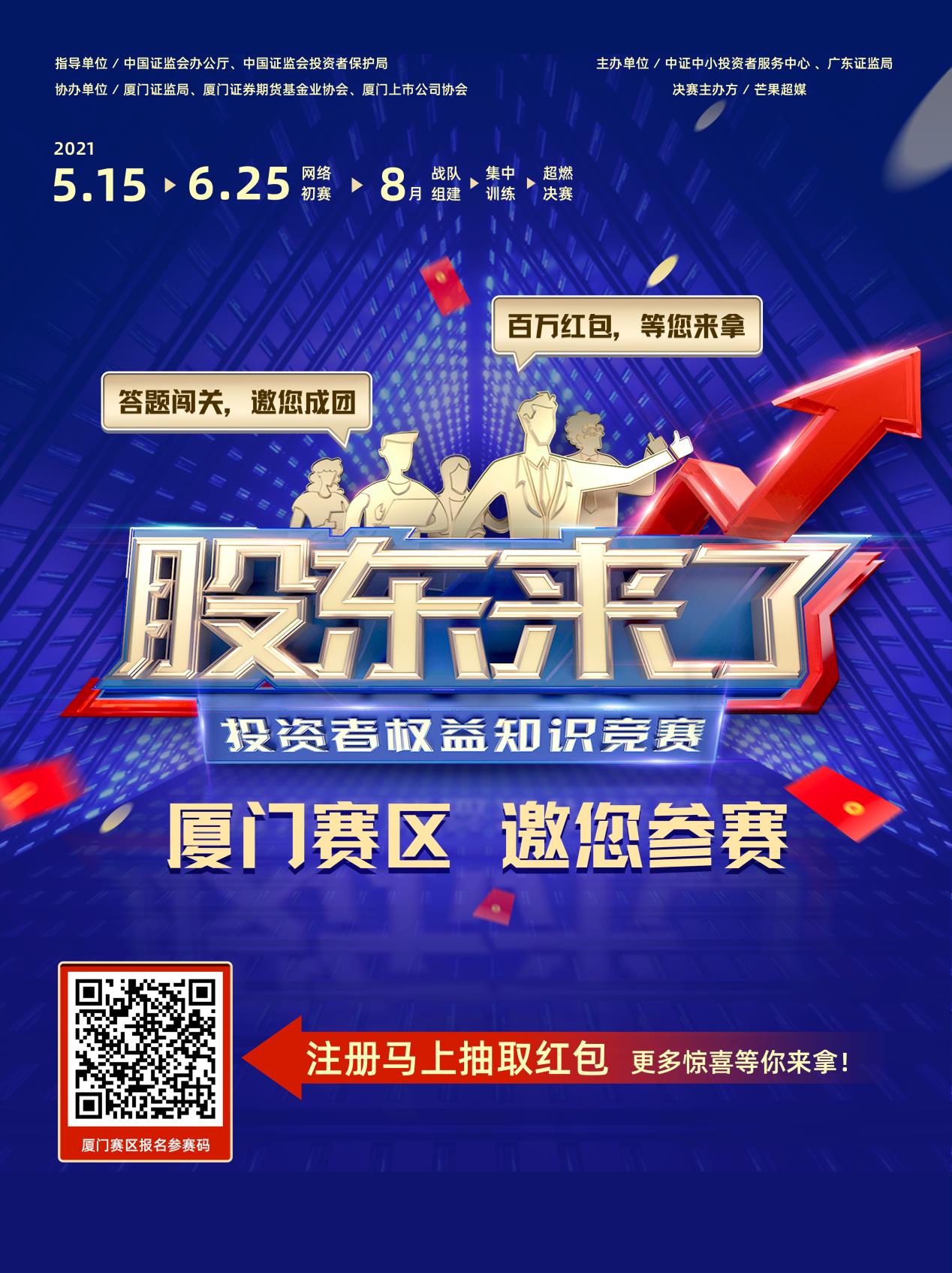 2021年是“十四五”規(guī)劃開(kāi)局之年,為進(jìn)一步落實(shí)證監(jiān)會(huì)黨委關(guān)于資本市場(chǎng)人民性要求和保護(hù)投資者合法權(quán)益的職責(zé),在會(huì)辦公廳、投保局指導(dǎo)下,投服中心將聯(lián)合廣東、四川、湖北、內(nèi)蒙古、海南、西藏六證監(jiān)局共同舉辦《股東來(lái)了》2021投資者權(quán)益知識(shí)競(jìng)賽,面向廣大中小投資者普及權(quán)益知識(shí),示范引領(lǐng)全面知權(quán)、積極行權(quán)、依法維權(quán)。